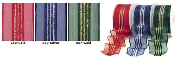 | 9343-250 | 1 1/2 x 50yd, Sheer Festive Wire Edge Ribbon, Red-Gold | Roll | 1 | $20.00 |