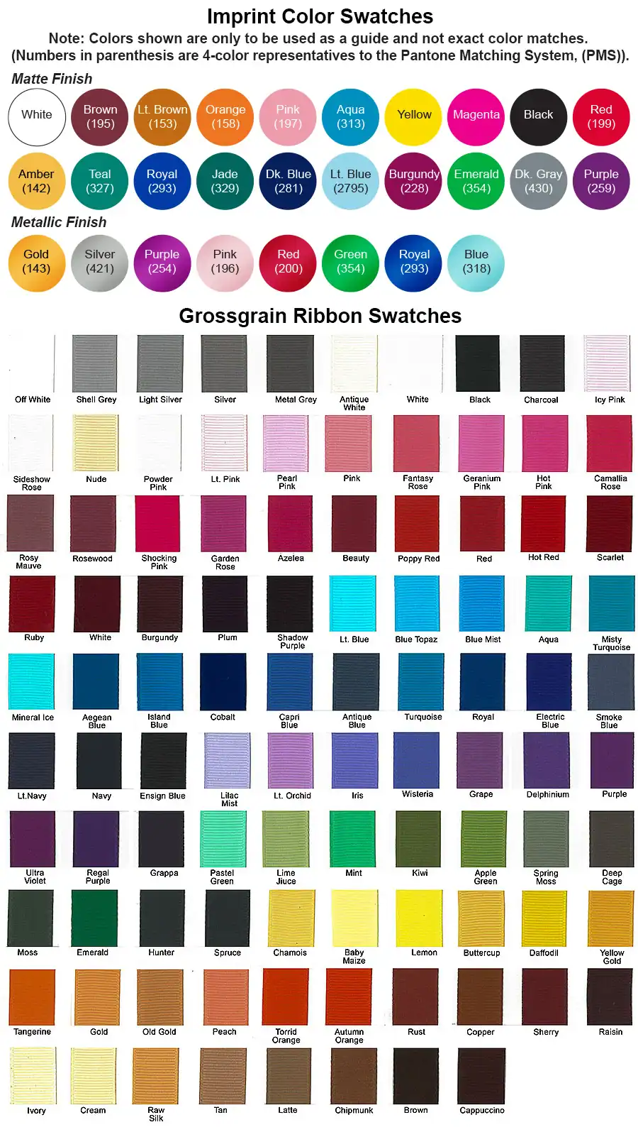 - Ribbon colors: Wide selection of satin ribbon colors, view the Satin Ribbon Swatches image to choose your ribbon color